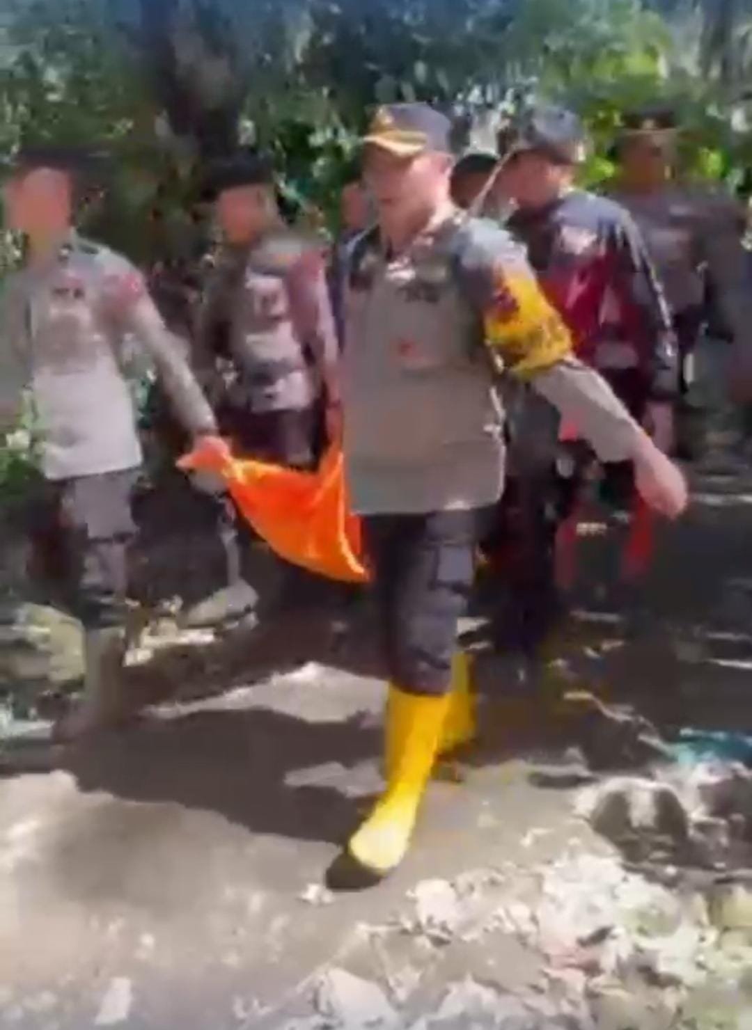 Sejak hari pertama pascabencana, personel kepolisian bersama warga setempat terlihat bekerja tanpa kenal lelah di berbagai titik yang terkena dampak paling parah. Mereka memasuki wilayah dengan medan yang sulit, mulai dari jalan berlumpur hingga jembatan yang hanyut terbawa arus. Dalam banyak momen, upaya kemanusiaan itu menampilkan pemandangan yang menyentuh hati. Di tengah arus sungai yang keruh dan deras, sejumlah anggota Polri membantu menyeberangkan warga lanjut usia yang sudah tidak kuat berjalan sendiri. Ada pula anak-anak kecil yang digendong di punggung personel demi memastikan mereka bisa meninggalkan daerah berbahaya tanpa mengalami cedera.