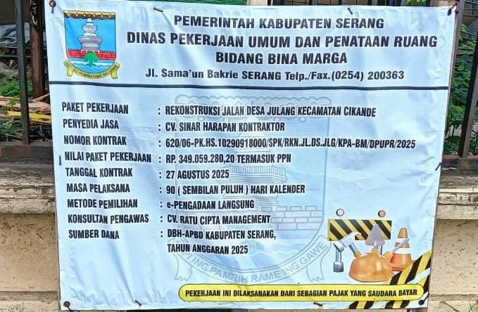 Proyek rekonstruksi jalan tersebut dikerjakan oleh CV Sinar Harapan Kontraktor, dengan nomor kontrak 620/06-PK.HS.10290918000/SPK/RKN.JL.DS.JLG/KPA-BM/DPUPR/2025. Nilai paket pekerjaan mencapai Rp 349.059.280,20 berikut PPN. Dengan nilai anggaran seperti itu, masyarakat menuntut kualitas proyek setidaknya memenuhi standar teknis yang sudah diatur oleh pemerintah. Namun temuan di lapangan memperlihatkan kondisi sebaliknya, sehingga menimbulkan berbagai spekulasi terkait mutu material hingga proses pengerjaan.
