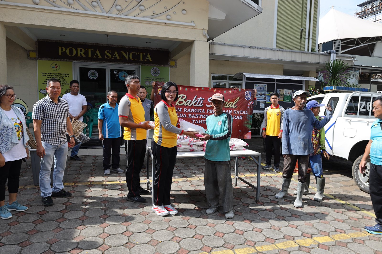 Bakti sosial yang digelar tidak hanya sekadar kegiatan seremonial, tetapi benar-benar menyentuh kebutuhan masyarakat. Salah satu agenda utama adalah pembagian paket sembako kepada warga kurang mampu di sekitar Kota Serang. Paket sembako tersebut berisi kebutuhan pokok yang diharapkan dapat membantu meringankan beban ekonomi masyarakat, terutama menjelang perayaan Natal dan akhir tahun, ketika kebutuhan rumah tangga cenderung meningkat.