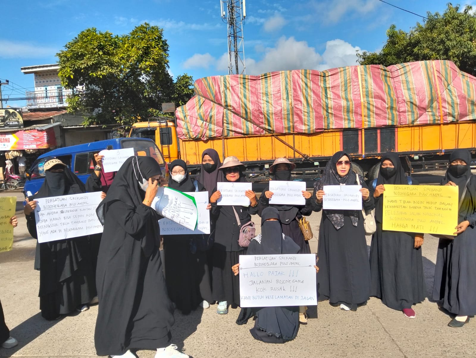 Onni Najib Hanafi, seorang wanita tangguh yang menjadi koordinator aksi, dengan lantang menyuarakan aspirasi para emak-emak. Ia mengungkapkan bahwa aksi ini adalah wujud solidaritas dan keprihatinan mendalam terhadap maraknya truk-truk bertonase besar yang lalu lalang di kawasan Bojonegara-Puloampel di luar jam operasional yang telah ditetapkan pemerintah.